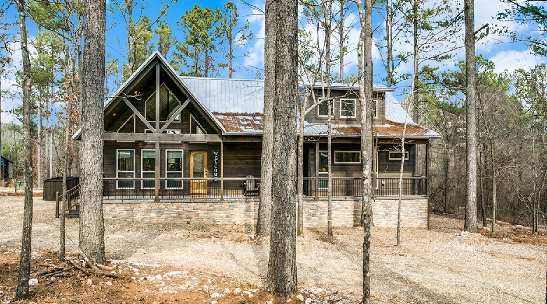 Into The Woods is a spacious 3-bedroom cabin located on a corner lot in Timber Creek Trails, phase 6. The living area has sofa and chair seating in front of a gas burning fireplace (seasonal October- April 15th). The TV is mounted above the fireplace and features a Smart TV for your app usage. The cabin has Direct TV channeling for all TV’s (PPV not available) The kitchen is equipped with dishwasher, wine fridge, microwave and glass cook top stove with electric oven. The cabinets are stocked with dinnerware, eating utensils, cookware, and bake ware. The dining table seats 8. Additional seating is provided at the island with stools.