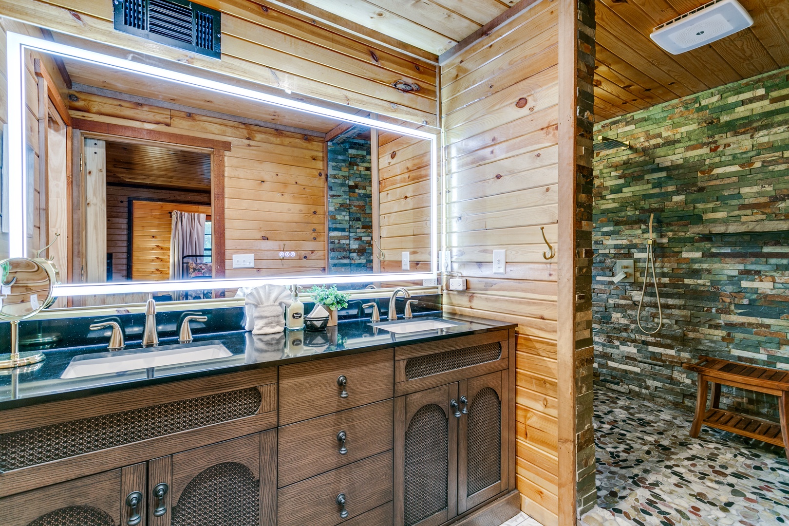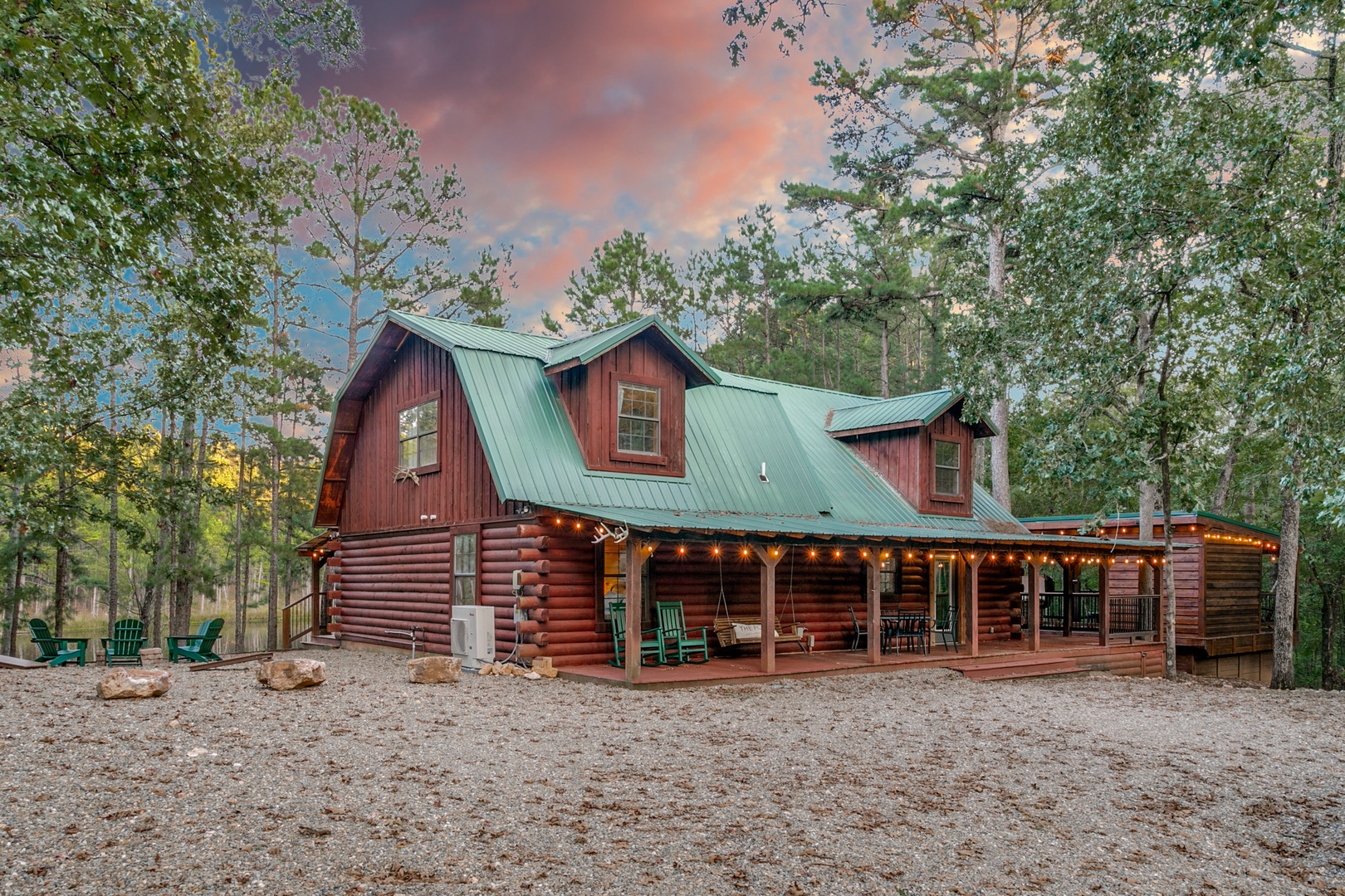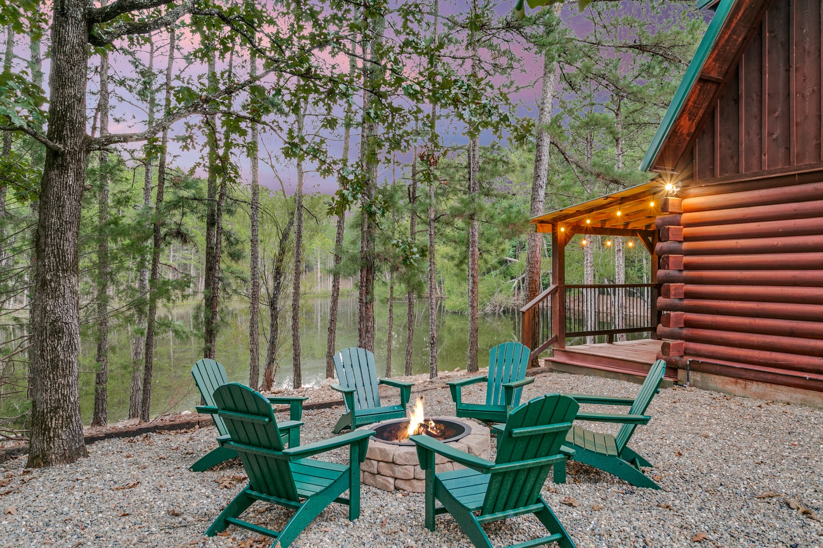 Experience a peaceful retreat at Hidden Waters Lodge, a rustic yet modern 3-bedroom cabin nestled beside a tranquil catch-and-release pond, where the nightly serenade of frogs provides a soothing soundtrack. Located amid the Ouachita National Forest, this cabin offers both secluded tranquility and convenient access to all the adventures Broken Bow has to offer.