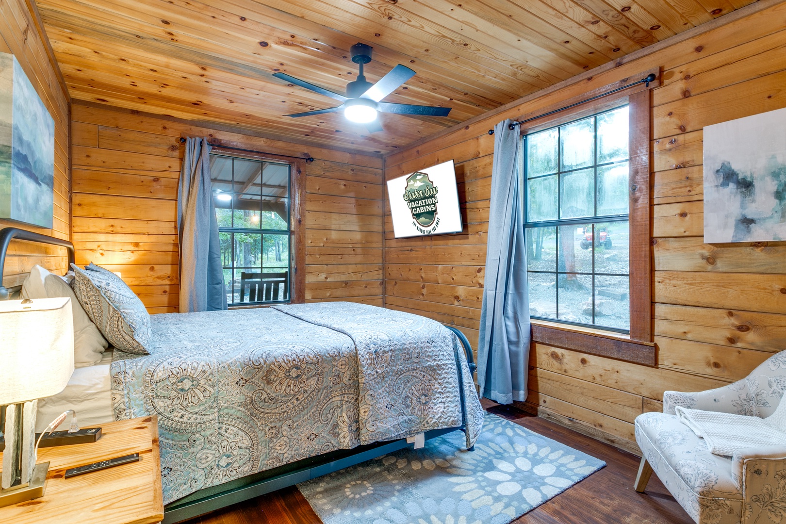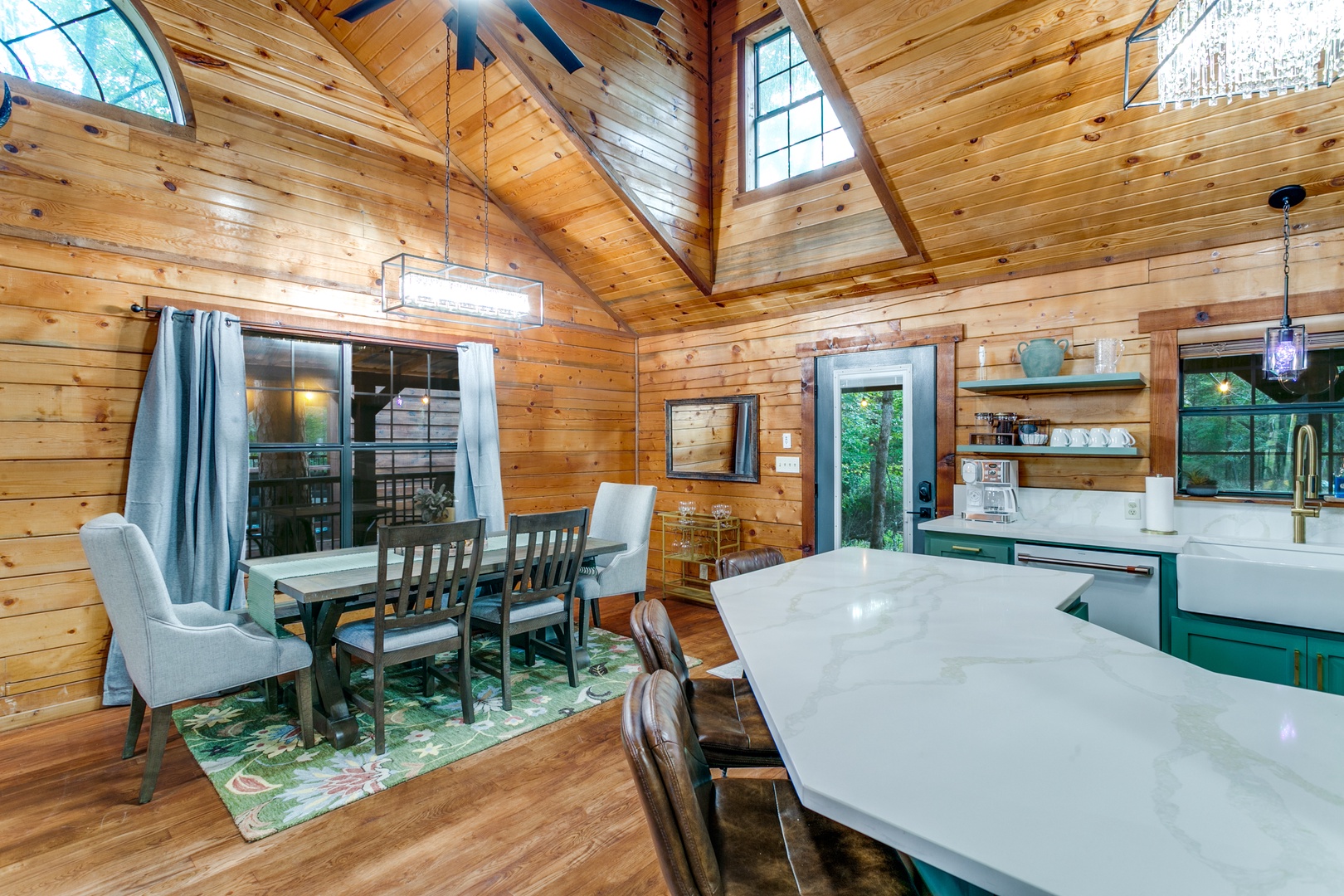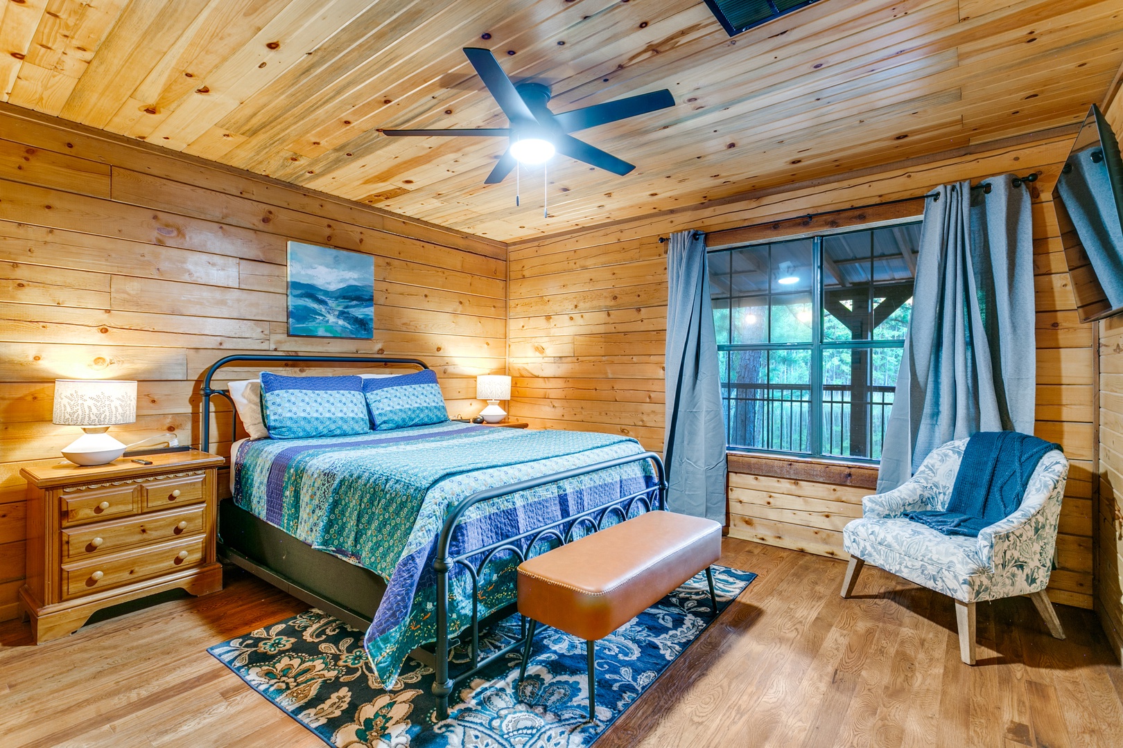 Experience a peaceful retreat at Hidden Waters Lodge, a rustic yet modern 3-bedroom cabin nestled beside a tranquil catch-and-release pond, where the nightly serenade of frogs provides a soothing soundtrack. Located amid the Ouachita National Forest, this cabin offers both secluded tranquility and convenient access to all the adventures Broken Bow has to offer.