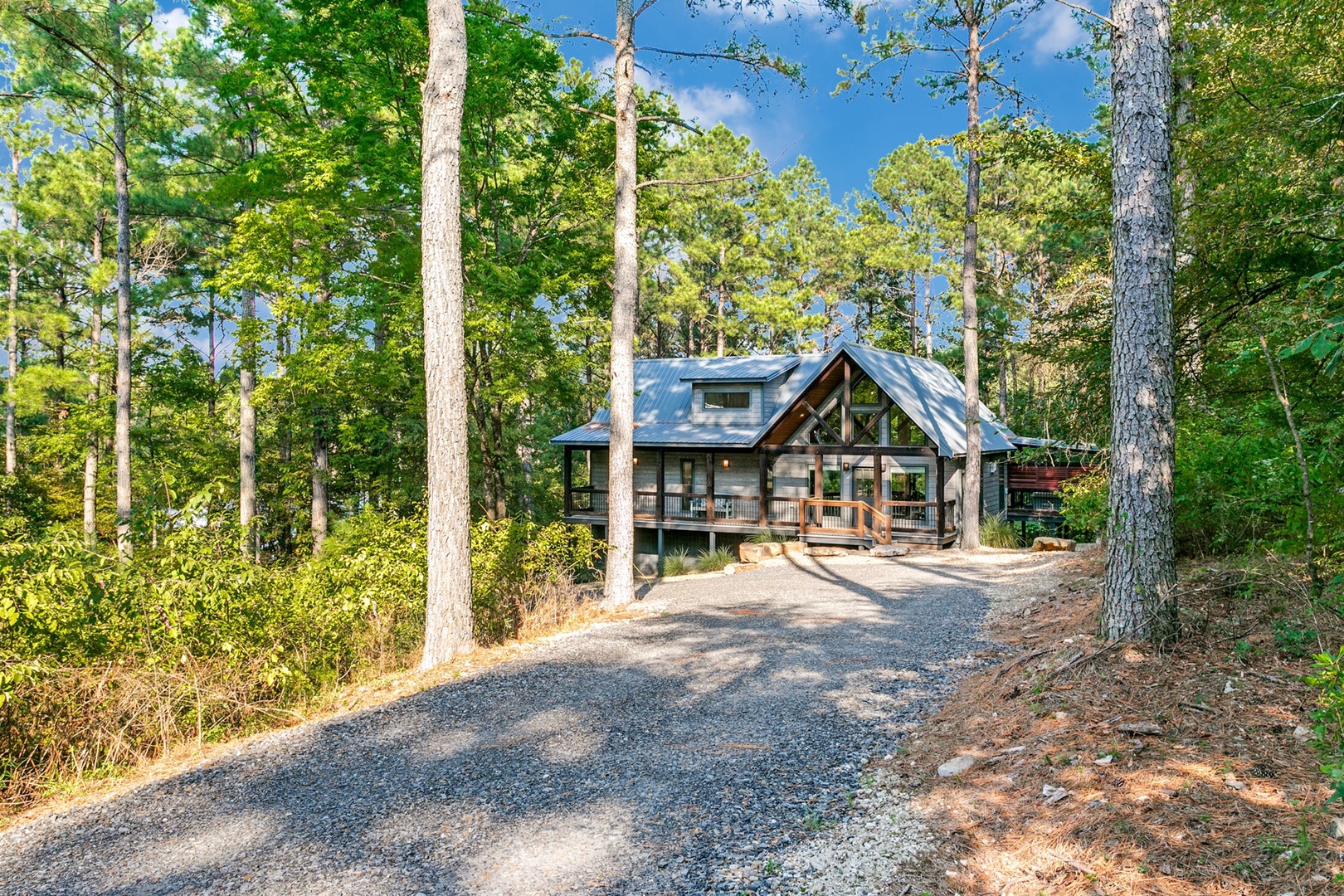 Bit 'a Honey ( formerly Deer Pines) is truly the sweetest escape! This charming one-story cabin is nestled on a heavily wooded lot, offering a tranquil retreat with a convenient circular driveway and paved road access.