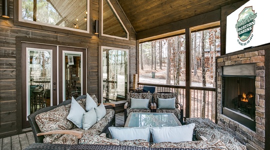 - Back deck with seating in front of Smart TV (DirecTV not available) Use personal subscription-based accounts.