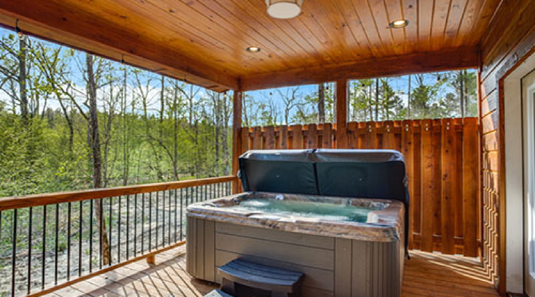 - Hot tub on deck area (hot tubs drained and sanitized after each guest visit)